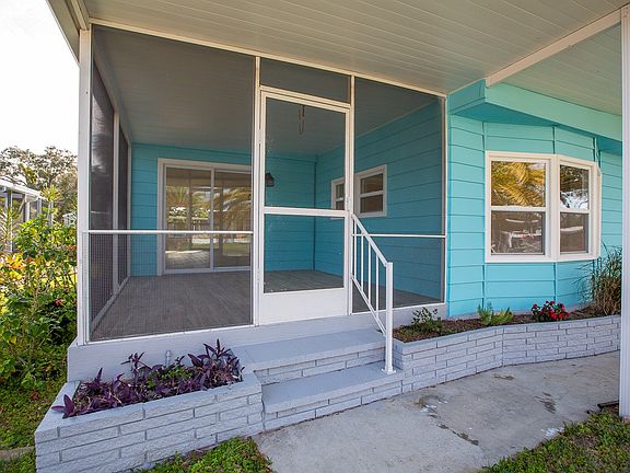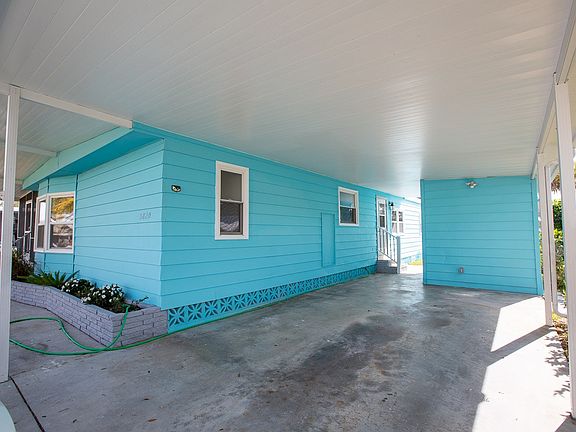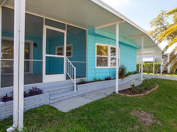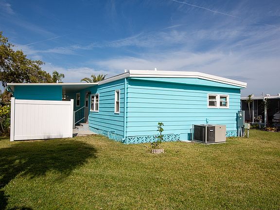 Known around the community as 'The Little Blue House" this is a true charmer! Don't let the name fool you because this house is anything but small. A 1982 Imperial is a TRIPLE-WIDE with almost 1600 sq' under air. Full of tropical flair this home has amazing curb appeal with mature landscaping, Caribbean blue exterior and giant Canary Island Date Palm. This is a happy home ready for its new owners and you'll be happy everyday when you drive into your big covered carport. Returning from the beach or pool will be a breeze when putting away those beach toys, golf clubs or bicycles in the large detached storage shed. Step inside and be amazed at the stunning full remodel. No detail was left untouched from top to bottom. All new wood-look tile flooring throughout, new wiring, fans and fixtures, new drywall and texture, new baseboards and trim, shiplap details, new HVAC system and ductwork, New TPO membrane roof and all new energy efficient, double-pane vinyl windows. Finished in neutral tones this home will be so much fun to decorate and personalize. It has large open-concept living and dining rooms which will make entertaining guests easy. Did you see the kitchen? All new white Shaker cabinets, with soft close feature, lazy Susan and upgraded knobs and hardware. Granite countertops, stainless steel appliances and big kitchen sink make this the perfect spot to show off those cooking skills for your new friends and neighbors! You'll surely be the life of the party hosting guests in this fantastic home. Just off the living room is an enormous bonus space. Measuring a whopping 22' long and 11' wide the possibilities are endless. This flex space could be a second living area or den, home office, craft room, mediation space for relaxation or exercise or even a master bedroom. There are numerous large windows flooding the space with natural light and views of the yard. This room also has a double slider with access to the front screened lanai a perfect space for enjoying the breeze and views of the palm tree and birds. Off the main living area to the front is the large 14x13 master suite. Complete with all new finishes, front wall of windows, big walk-in closet and attached ensuite bath this room will accommodate most of todays large king sized bedroom sets with ease. No master would be complete without a gorgeous bath and this one doesn't disappoint. With no detail left out, there is a double vanity with granite, private walk-in shower to envy and spa, a linen storage area and toilet. Don't worry, this home has something for everyone including guests. Located down a private hallway with shiplap details, is the large guest bedroom. This room has big windows, beautiful tile floors and a nice sized closet. So much space you may have a hard time getting your company to leave! At the end of the hallway is the guest bath. Tucked nicely away for privacy this room too is top notch. A large granite top vanity, private toilet area and combination tub/shower will surely make your guests feel pampered. This home truly offers so much for so little and is priced below market value and other comparable properties. This Seller want it SOLD! Be prepared to fall in love and don't forget your checkbook because homes this nice at this amazing price simply do not last. Call today for a private tour and make this coastal cottage your HOME! THIS HOME IS ON LEASED LAND WITH AN APPROXIMATE MONTHLY LOT RENTAL FEE OF $1475 FOR THE NEW OWNER. SEE ADDITIONAL INFORMATION BELOW. Camelot Lakes Village is an age restricted 55+, gated community which offers resort style amenities, large heated pool and spa, outdoor sports courts, outdoor BBQ and kitchen, exercise facility, technology center, game rooms and monthly activities to suit your needs. Monthly lot rent of approximately $1475 includes water, sewer, weekly trash and recycling pick up as well as lawn care, trimming and blowing. All listing information is deemed reliable but not guaranteed. Buyer to verify all info