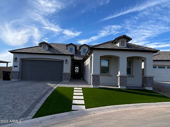 Spring 2024 CLOSING!! Resort like community w/ mountain topography, unique terracing, trails and preserved natural desert. Community features an Owner's Club, with Heated Resort Pool, Spa, Gym, walking trails, Pickleball, Contemporary Event Barn, Amphitheater style lawn, all under a Red Mountain back drop. Peaceful. Convenient. Away from the hustle of the Valley. Easy access to 202 Freeway, Sprouts Natural Grocer, dining options, and Theater just blocks away. Home features large chefs kitchen, massive island, 15' Wall of Glass opening up back yard. A Freestanding Tub, frameless glass shower encl @ Owners Suite, 3 Car Garage, Paver Brick Driveway, overlooks greespace to both front and rear. Quiet Culdesac in center of Community, Steps to Clubhouse. Taxes Estimatd. Spring Completion