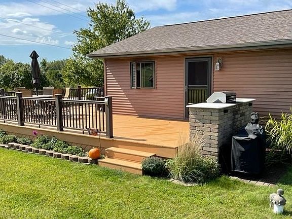 3 bedroom,2 bath ranch style home with basement just east of Fremont. This property is 14.26 acres next to Cedar Swamp State ground, with some of the best hunting in the area. 48x48 insulated pole barn with 3 overhead doors 10 feet high with openers, heated, water hydrant and 220 electric. 28x28 addition on the back that is not insulated, has 1 overhead door 10 feet high with opener and another water hydrant. Towards the back of the property is a 12x16 shed with 10x16 addition with water hydrant & electric. This would make a great place for the farm animals. House has a 28x36 attached insulated garage, 2 overhead doors with openers and garage floor mats coving the entire floor. Come in from the garage to the large mud room, basement has full bath with laundry. 3rd bedroom includes wardrobe closet and desk. Also staying is the pool table, hot tub and oak TV entertainment center. No worry if the power goes out you have a whole house generator that turns on automatically. Upstairs you will find the Kitchen with custom made ¾ inch oak kitchen cabinets, quartx countertops, all kitchen appliances included. Full bath with custom tiled shower. Living, dining and 2 more bedrooms. On the large 612 sq ft deck with cedar decking boards and timber tech composite railing, you also have a built-in gas grill with quartx counters making a nice area for all those cookouts. These kinds of properties just don’t come up for sale very often.