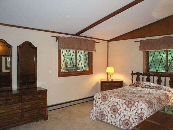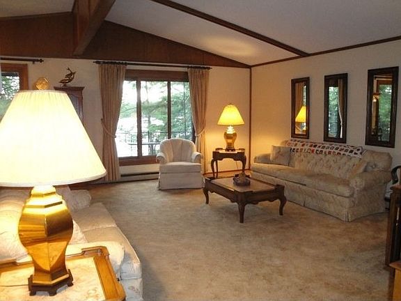 This year-round home on Jennie Webber Lake offers 211' of sandy frontage, 3 bedrooms, 1 1/2 baths & open-concept living. The lower level walk out features a family room with gas freestanding fireplace & a lakeside 3-season room. There are lift chairs to the upper & lower levels for accessibility. A circular blacktop driveway, nice landscaping, beautiful treed & semi-private yard, 2-car attached garage, older garden shed, newer well & water conditioner complete the property.