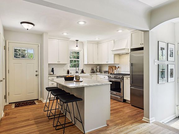 Charming and well-maintained one-story home with 4 bedrooms (3 on the main level), 1.75 baths, an open concept main level with updated kitchen, center island, farmhouse sink, Cambria countertops and stainless appliances. Relax in the enclosed 3-season sunroom to read, converse, or just soak up the peacefulness! You'll love the hardwood floors throughout, partially finished lower level with remodeled 3/4 bath, 4th bedroom with egress and comfortable family room with all new carpet - great for movie nights! Enjoy the fenced backyard and large paver brick patio and tiered gardens! Surrounded by area parks and local dining options and a short walk to Grass Lake!