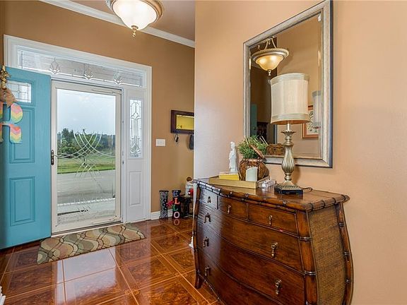 Beautifully maintained custom home on 4.02 Acres, 36'x40' Shop building. Split floor plan with spacious open country kitchen, granite counter tops, walk-in pantry. Tile and bamboo flooring. Propane gas fireplace. New A/C unit (6 months old). Upgraded energy efficient custom windows with ultra-violet block. Peep less wood blinds Over sized two-car garage. Floored attic storage. Shop has electric and water concrete floors 10'x10' drive door. Six person storm shelter. Enjoy views covered porch.