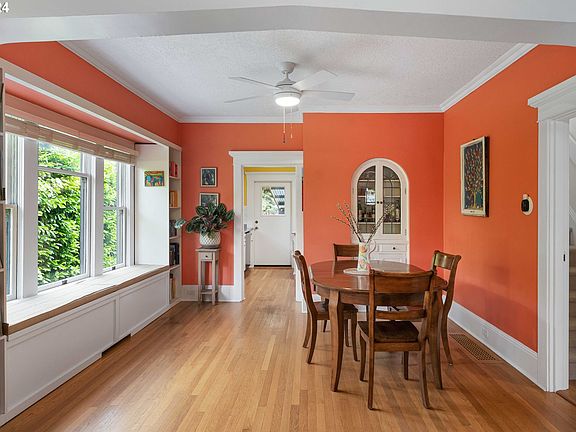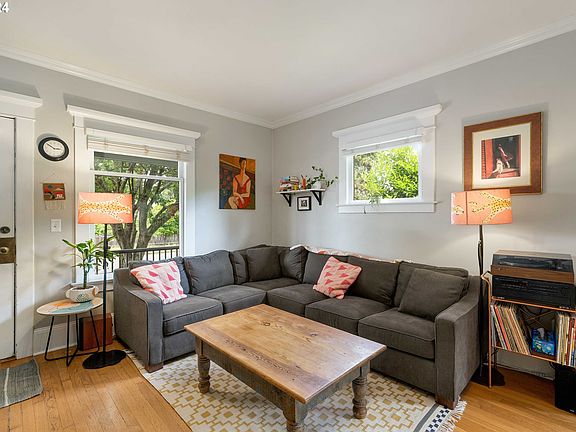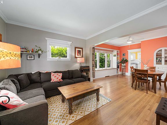 Charming Portland Craftsman style home nestled on a quiet dead end street between thriving Woodstock and Foster Powell neighborhoods. The lovely covered front porch leads you inside the home where you will find a living room with hardwood floors that flows into the dining area and connects to an upgraded kitchen with a bonus kitchen nook. The main floor includes built-ins throughout, with two bedrooms, one with an adjacent room that is perfect for an office, as well as an upgraded full bathroom. Upstairs is ideal for families with two sizable, light-filled bedrooms with natural wool carpeting, and connected by a large, updated bathroom. The owners have put their hearts into this home, including restoration of the original wood windows with updated double-paned glass, seismic retrofit, quartz kitchen countertops, refrigerator and other energy upgrades. Much care has been put into the garden with many perennials, a storage shed, and a covered back deck that is perfect for outdoor entertaining. The unfinished basement is great for storage, but with sufficient ceiling height that provides endless potential for finishing.