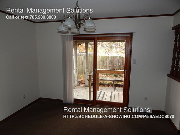 SCHEDULE A SHOWING ONLINE AT: showmojo.com/lh/56aedc8070 Now available is this 3+ bedroom and 3 bathroom home located on the West side of Topeka. It's location makes shopping and I-70 so convenient! The kitchen has a ton of cabinet space including a pantry. The basement has a rec room and another possible bedroom. In addition, a storage room. The home also features a ADA ramp in the front and in the back. Another convenience is that the lawn care is included in the lease. This home has so much space, it is a must see!! There is a small monthly fee of $4 that covers all pest control services. Call today to schedule your tour!