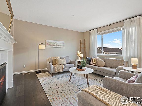 Built in 2021, this 4-bedroom, 3.5-bath home blends Windsor living with quick access to SE Fort Collins shopping, restaurants, and I-25. The main level features a two-story entry, private study, powder room, and an open-concept great room with gas fireplace. The kitchen includes granite counters, center island seating, stainless appliances, walk-in pantry, and a mudroom leading to the 3-car garage. Upstairs, three bedrooms enjoy privacy with no shared walls, plus a loft/flex space, two full baths, and a convenient laundry room. The fully finished walk-out basement adds a spacious recreation area, full bath, and additional bedroom or office. South-facing orientation brings natural light and quick snowmelt in winter. Outdoor living features an upgraded paver patio with low-maintenance landscaping, ideal for outdoor dining or relaxation. Located on a quiet cul-de-sac within a well-kept community, this home sits minutes from Front Range Village, Twin Silo Park, and popular coffee options like Ziggi's and Dutch Bros. Groceries, Costco, and additional retail are close by, with easy routes into downtown Windsor for local dining and access to Windsor Lake and Boardwalk Park. HOA $298 quarterly.