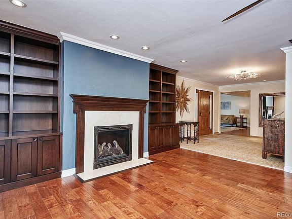 Exceptional home in the desirable neighborhood of Southmoor Vista in Cherry Hills Village. Located in the award winning Cherry Creek School district. Beautiful wide plank, hand-scraped cherry wood flooring and crown molding accents throughout the main living spaces. Floor to ceiling cherry wood bookcases built by BOA Construction and new fireplace are featured in the custom library/study. Sun filled living/family room adjoins dining room that seamlessly flows into the custom gourmet kitchen with granite counters and alder wood cabinets. You will love the Sub Zero refrigerator, GE gas range with dual electric ovens, griddle, grill and range hood as well as Miele dishwasher, Perlick wine cooler, microwave oven, 2 cold beverage drawers, hot water dispenser, bar sink. Three sets of over sized French doors from the dining room and kitchen lead to a spacious backyard. The main floor master has a private door to the back patio, hand scraped cherry wood floors, soaking tub, rain glass shower, and heated floors in the bathroom and large closet Many custom upgrades were done in 2020 including new carpet and decorator paint throughout the interior, new en suite second bedroom, powder room, coat rack/seating area near garage. The laundry room includes LE front load washer & dryer with steam functions, over sized deep ceramic sink and drying racks. Upstairs is a spacious bonus room perfect for an in home office or for homeschooling and has plumbing available for a bathroom. Lower level is comprised of 2 conforming bedrooms, 2 baths, an exercise area, flex space and additional storage. Surround sound speakers throughout the house and back patio. Heated garage with new epoxy floor and driveway. Beautiful park like backyard with flagstone patio and gas hook up.