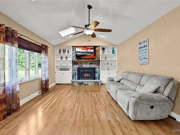 Significant updates add comfort and peace of mind, including a tear-off roof replaced in 2014 and a shed roof upgraded with steel in 2022. A tankless hot water heater was installed in 2019 by Steve’s Heating & Cooling, and a generator hookup was added in 2021. Exterior lighting above the garage, front porch, and rear porch was installed in 2020, and the garage now offers an attic storage area, along with new door springs in 2024. The wood shake siding on the front of the home was replaced with matching vinyl in 2020, and the front ditches along the roadway were filled with a new culvert pipe installed in 2021. The basement includes a finished recreation room with glass block windows and comes with a transferable lifetime waterproofing warranty through Everdry.