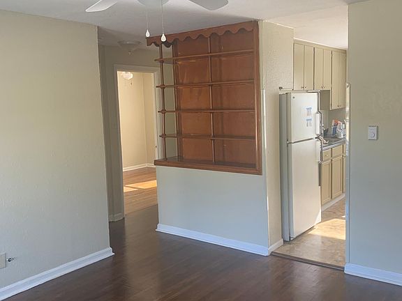 Nice 2 bedroom, 1 bath home with dine-in kitchen and attached garage. There is enough concrete space in front of the garage to park 2-3 cars. Kitchen has been updated. Ceiling fans in each bedroom and living room. 2 Window units keep the house nice and cool. Each room has its own floor radiant heater with control. W/D hook ups in garage. Fenced backyard. Perfect home for a single person or a couple. Please drive by and give us a call if you wish to see it. Some of our requirements are: Minimum 6 months on the job earning at least $1,900/month, no felonies, evictions or recent bankruptcies. We do not have any Section 8 housing. Tenants pay all utilities. We prefer no pets but small dog may be considered. Pet allowed, but subject to owner approval. Please provide breed, age and weight.