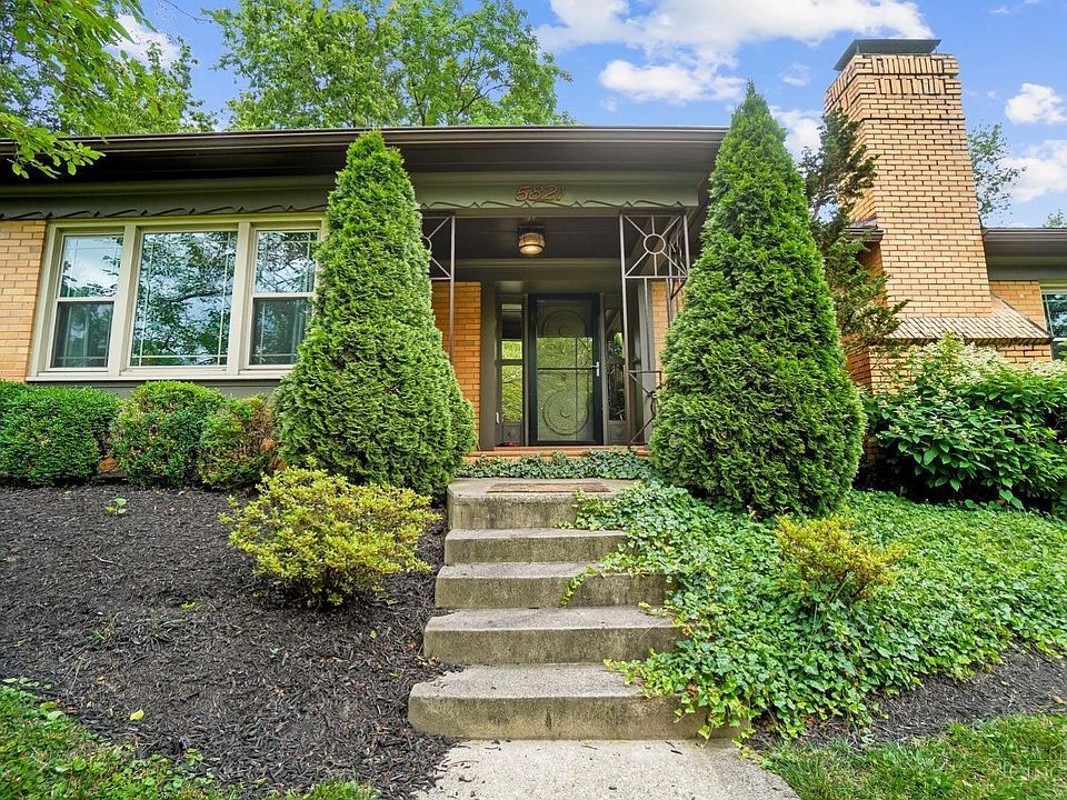 Wonderfully charming and spacious ranch! 5821 Euclid Rd is full of mid-century features like the unique front door, tiled kitchen ceiling, several built-in cabinets and butler's pantry/wet bar that opens into the family room. Additionally, you'll find beautiful hardwood floors, two fireplaces, a first floor primary bedroom and massive windows. It may be a ranch style but due to the footprint and horizontal configuration (bedrooms down one hall, living room in front and family room in the back) you won't have any issues spreading out. Need more space? Simply go downstairs to the lower level with two bonus rooms, a room with en-suite bath (mosaic tile), a big laundry room plus LOTS of space for storage and direct access to the two car garage. The backyard is the perfect escape with a deck and large, flat, grassy area surrounded by trees. Whether you plan to lean into the mid century style or prefer to renovate to your taste, this home will be a great fit! Newwer windows. Sold as is.