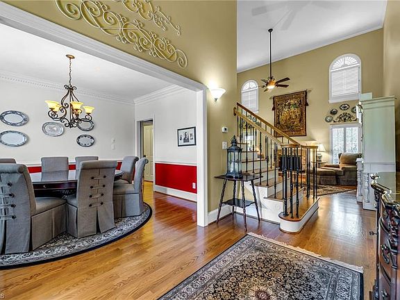 Gorgeous home in highly desirable Flemington Ridge! Welcoming 2 story foyer with tons of natural light. It’s easy to entertain in this home! Large formal dining room. Spacious great room with soaring 2 story ceiling, cozy gas fireplace, wonderful windows. Beautiful hardwood floors. Amazing kitchen with solid surface countertops, large kitchen island with seating, gas cooktop, built-in ovens. Oversized sunroom with soaring ceilings, skylight, surround sound. The perfect place to relax! Main level primary bedroom suite with hardwood floors, walk in closet and luxurious bath with dual vanities, jetted soaking tub, walk in shower. Upstairs are two additional bedrooms and a full bath. Plenty of storage. Walk in attic offers more storage. Glass French doors lead to a beautiful, private brick patio surrounded by a sitting wall. Speakers throughout most of the house including the outside patio. Beautifully landscaped. Easy commute. Convenient to nearby shops and restaurants