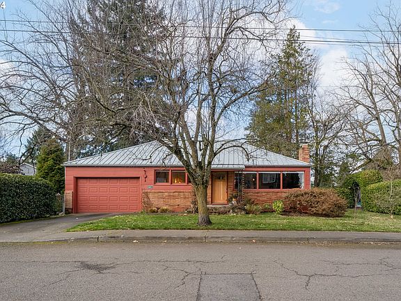 Timeless mid-century design graces this expansive corner lot with hardwood floors throughout, featuring updated flooring in the bathroom and kitchen. The property exhibits newer electrical service, including most wiring and panel, as well as a new waterline from the street. Highlights include delightful brick accents, ample natural light from corner windows, and a thoughtfully designed floorplan. The oversized one-car garage provides extra space for storage or projects. A generous fenced side yard, adorned with mature hedges, enhances both privacy and charm in this delightful home. [Home Energy Score = 6. HES Report at https://rpt.greenbuildingregistry.com/hes/OR10224975]