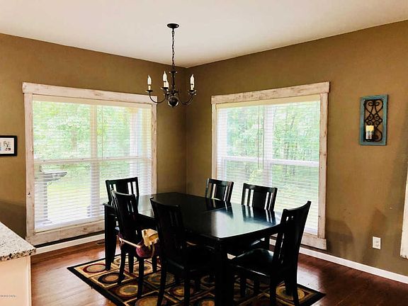 Beautiful rural property on 9 wooded acres with a pond. House has open floor plan flow for living room, kitchen and dining area. Kitchen features granite counter tops, large island with eat at bar, mini office space for computer, and pantry. Custom blinds on windows, but you will want to leave them open to appreciate the views. Family room, fourth bedroom (which serves as a safe room as well) and full bath in basement. Oversized 3 car garage has 15x9 workshop room with utility sink. Enjoy the outdoors from covered wrap around veranda. If you are looking for a country setting within minutes of towns and I 49, this is it!