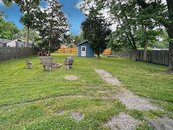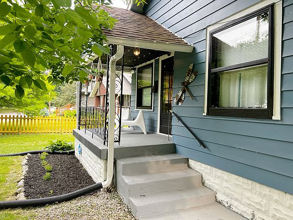 Updated Irvington Charmer! Beautifully refinished hardwood floors and original solid wood doors with classic handles; Updated kitchen with newer cabinets, lighting, butcher block counters and SS appliances; Bathroom has also been updated with tile and lighting; Sitting on the covered front porch is a great way to enjoy your large fully fenced yard; Useful enclosed back porch / mudroom space; Back yard is surrounded by a privacy fence and features a firepit with benches that stay and a brick "fireplace"; Garage functions more as a shed
