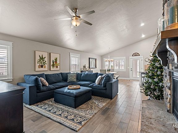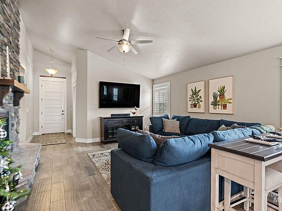 RATE REDUCTION!! CALL TODAY FOR DETAILS! Step inside to find a bright & airy open floor plan with vaulted ceilings, abundant natural light & a cozy gas fireplace. The kitchen is a dream, featuring granite countertops, soft close cabinets & drawers, gas stove, double oven, microwave, & large pantry. Gorgeous tile hardwood-style floors flow throughout the main living areas. The primary suite is a tranquil retreat, complete with a spa-like bathroom that includes a walk-in shower with multiple showerheads & body sprays. The split-bedroom layout ensures privacy, with three additional spacious bedrooms. Upstairs, a versatile bonus room with a full bath offers the perfect space for a guest suite, second master, or media room. The backyard is a true oasis with mature landscaping, concrete curbing & beautiful rockwork. Entertain guests on the expansive covered patio or enjoy the peace & privacy of this serene setting. Additional features include plantation shutters, a large attached storage shed & a spacious garage.