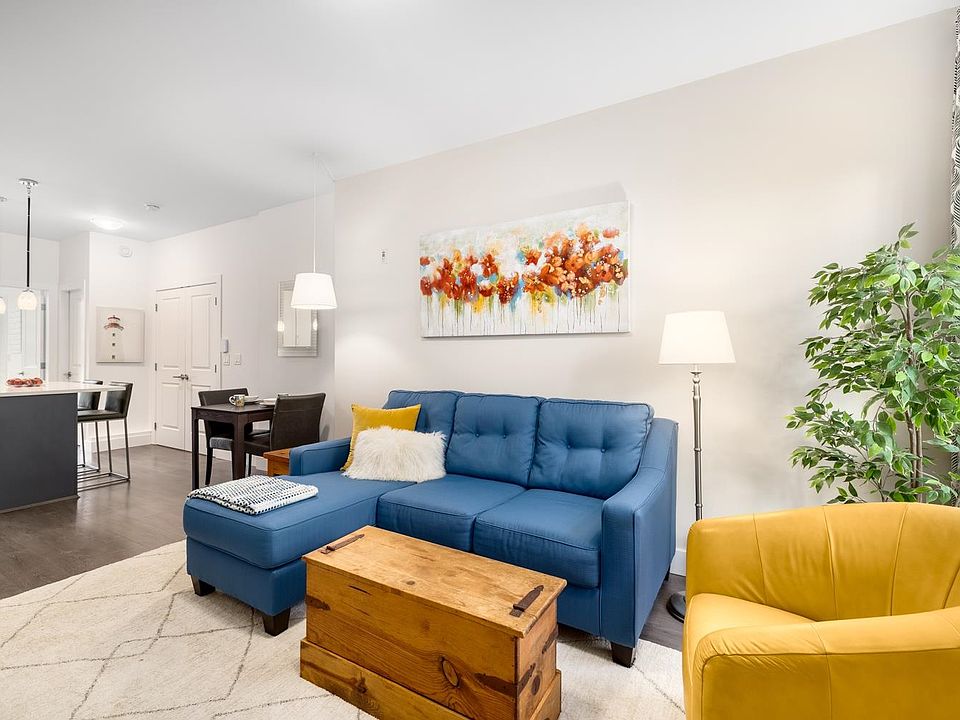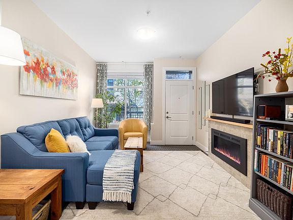 Fabulous LIKE NEW one bedroom ground floor garden flat at 'Avalon Mews' is sure to impress. Love the 9 FT ceilings, custom electric fireplace, wide plank laminate flooring, chef-like kitchen with quartz counter tops, full size stainless steel Electrolux appliance package, including a 5 burner gas range. Additional features: front load washer dryer, walk-in closet, hot water on demand, custom pendant lighting & drapes. Love the Southwest facing 243 SF enclosed yard that faces a quiet pedestrian walk way. This complex is located in the Killarney neighbourhood close to large green spaces, schools, golf courses, stadiums, the Joyce Skytrain station, Killarney community centre plus all the amenities along Kingsway & beyond. Club house, parking & storage, garden plots, 2 pets & rentals allowed.