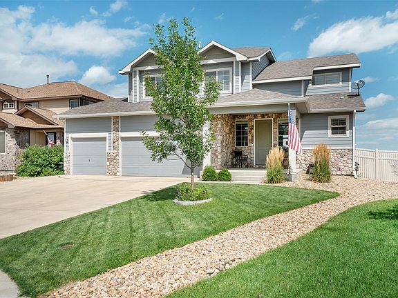 Welcome to this BEAUTIFUL 4 Bedroom 3.5 Bathroom Home with a spacious open floorplan. Enjoy stunning Lake Views from you large covered patio with the best Sunsets over Longs Peak. Master Suite includes a gorgeous 5 piece Master Bathroom with Private Water Closet and a large Walk-In Closet. Kitchen is equipped with Stainless Steel Appliances, Granite Countertops, Knotty Alder Cabinets, spacious pantry and wood floors. Partially finished basement with a 3/4 Bathroom and Bedroom. Large 4 car garage and a garden shed provides plenty of room for all of your hobbies.