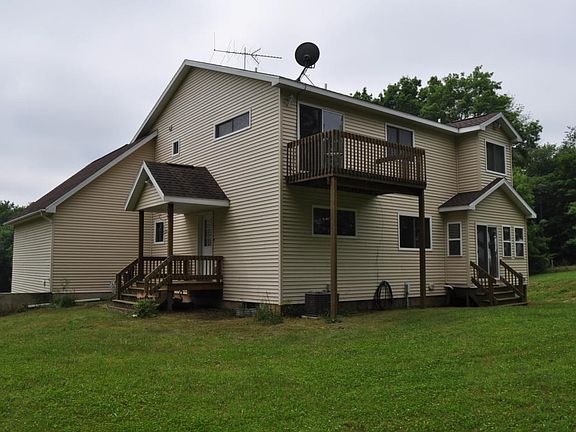 Scenic 40 acres with an abundance of wildlife & stream. This three level, 3 bedroom, 3.5 bath home has so much to offer. Ample size eat-in kitchen with large bar sitting area & opens to roomy dining room. ML laundry, master suite has jet tub with built-in fireplace eclectic heater & spacious walk-in closet. You will love watching movies in amazing the theater room located on the main level. New 4 season room is nearly complete on the back side of home. Home is equipped with corn burner for ext ra savings on heating bills. Plenty of extra storage in barn.