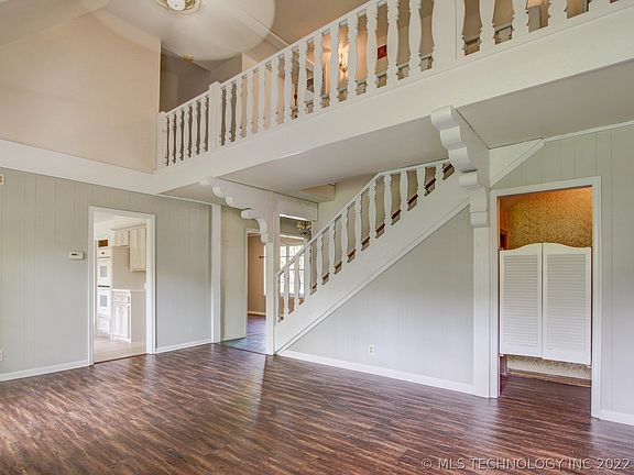 Just installed new flooring downstairs, freshly painted kitchen cabinetry, den trim & walls have fresh paint. Master bath remodel just a few years ago; retro wet bar in the den; 4 bdrm, 2 bath upstairs, all spacious! Downstairs has master suite, den, living, dining, kitchen, breakfast area, utility room & 1/2 bath. The yard is beautifully landscaped with a large deck in the back. The neighborhood has sidewalks throughout, & is 1/2 mile to St. Francis Hospital.