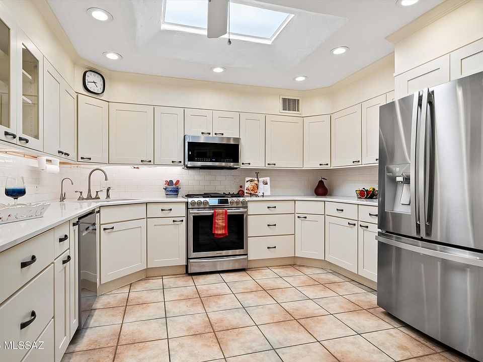 Classic Tucson Ranch in desirable Wilshire Heights! Great living space, charming 4 bedroom 3 bath home. Large bright living room opens to dining area off updated kitchen! Plus a cozy family room opens to backyard. Bright updated kitchen w/modern white cabs, w pull outs & Quartz counters. Cook's dream w/loads of counter space & gas range w/griddle. Split bedroom plan, 3 bedrooms off main hallway, one is an ensuite. Primary ensuite entry off family room, offers large bedroom plus spacious bath w/soaking tub and door to patio. Lovely enclosed front porch perfect for morning coffee while taking in mountain views. Large lot, almost 1/2 acre has covered space for RV parking. Also, think ADU, this is a perfect lot for an ADU. Newer HVAC's, 2 & 4 yrs old. Very well cared for home in Very well cared for home in convenient central location, close to shopping, schools & park. Make this one yours today!
