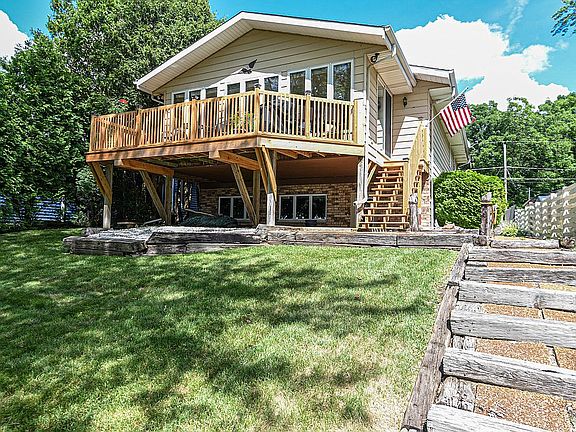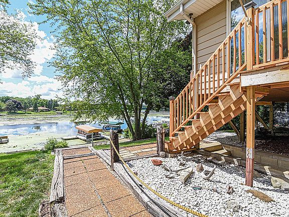 Lake Home! A beautiful open concept home over looking the water with western views and sunsets. Enjoy a newly built wrap around deck with 2 sliding patio doors and floor to ceiling windows. The main floor bedroom has a master bathroom. The addition was done in 1999. Main floor laundry room. The open staircase leads into your lower walk out with a open concept living room area and den area. There is room to expand a 3rd bedroom on the lower level. The fireplace makes a big statement to the room. Come and explore over 1,100 acres of waterway. The waterway hosts 3 restaurants/bars, marina, 4th of July fireworks, sandbar, kayak, canoeing and many events.