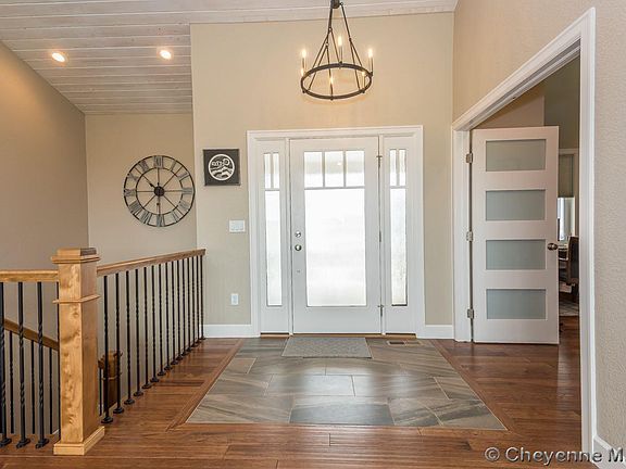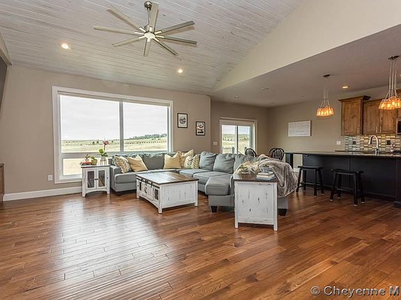 Incredible Frauendienst construction with gorgeous natural light through the vast windows. This home offers a wide-open floor plan, a deck off the dining room, soaring ceilings, and a lovely fireplace to cozy up to on those chilly Wyoming days. An ENERGY STAR home with a 9' unfinished basement, the exterior is maintenance free with brick and steel siding. The yard is fully landscaped with a sprinkler system and has vinyl fence in the backyard. In brand new condition!!