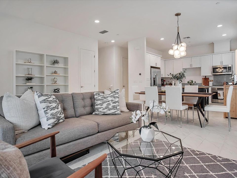 Experience luxurious living in Newarks prime location with great views! This spacious 2 bedroom and 2.5 bath corner unit boasts an open floor plan, updated fixtures, and modern design elements like sleek tile flooring on the main level. Revel in recessed lighting, new fixtures, and two covered balconies. The upgraded kitchen features stainless steel appliances, a spacious pantry, and a stylish chandelier. The primary suite opens to an upstairs terrace, showcasing a walk-in closet with a natural light window and a spacious en suite. The junior suite includes a walk-in closet, and laundry (washer/dryer included) is conveniently situated on this level. Enjoy the convenience of a tandem two-car garage, guest parking outside, eco-friendly HVAC, low HOA, a community playground, and walking path. The location is ideal, close to Challenger School, daycares, local shopping, dining, major commute routes, employment centers, and shuttle stops for major tech companies. Walk to Starbucks, NewPark Mall, grocery shopping, and entertainment this is Newark living at its finest. Dont miss out on this exceptional opportunity!