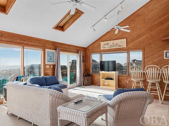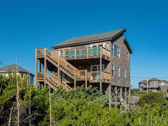 Charming semi oceanfront Hatteras Village home with ocean views and convenient location. This 4-bedroom 2.5 bath home features a top floor with amazing ocean views from the family room, dining area and kitchen. The galley kitchen boasts wood cabinetry and a breakfast bar for additional seating. A separate wet bar area across the room is the perfect spot for entertaining and also has extra seating. A convenient powder bath is also on this level. The abundance of windows and sliding doors to the large deck, coupled with the cathedral ceilings, give this floor a spacious and open feel. Natural wood is prevalent, not only on the cathedral ceilings but on all the walls throughout this home creating a rustic nautical vibe. The 4 bedrooms are on the midlevel. Two oceanside bedrooms with views share a Jack & Jill bath and enjoy covered deck access to the hot tub. Two more bedrooms and a full hall bath complete the accommodations. The full-size washer and dryer are on this level. The ground level features continuous access to each deck level. No going inside and out to reach the top sun deck or midlevel hot tub. There is also an outside shower, plenty of enclosed storage and a fish cleaning table. Located within walking distance to restaurants, shops, and the marina, âMcKaylaâs Hopeâ offers a laid-back relaxed vacation experience that a second home or investment buyer will love.