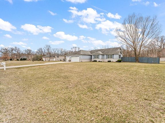 RARE FIND with this beautiful RANCH nestled on an acre in a serene neighborhood, but close commute to I 65 or Route 41! There is alot to love about this home, including the HUGE KITCHEN, there are solid wood cabinets and tons of them, generous counter space w/ peninsula, newly added SS undermount sink, new lighting, SS appliances and just tons of space to actually move around! There is laminate flooring throughout living and hallway areas, tile in foyer, SOLID DOORS throughout the home. Finished laundry room w/ NEW SHLEVING + STORAGE GALORE, newly renovated powder room. PRIMARY suite w/ large bathroom and walk in closet. Tons of storage in this home! Going outside you'll find FULLY FENCED BACK YARD, NEWLY ADDED POOL, SHED AND FIRE PIT. Did I mention a FINISHED+ HEATED 3 CAR GARAGE, that too! Home is freshly painted and READY TO MOVE IN! HOME WARRANTY INCLUDED!