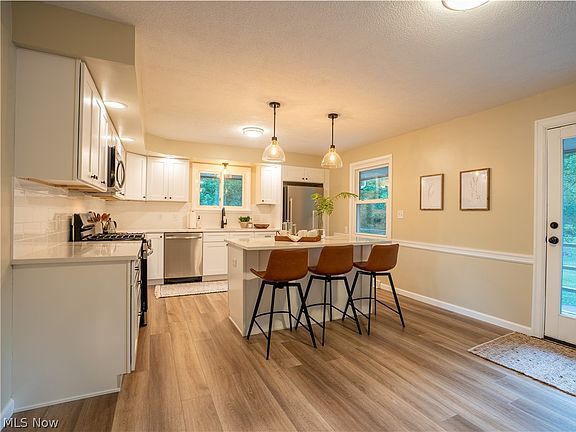 Don't let the adorable front facade of this North Canton home fool you. It is a force to be reckoned with! Not only does this single family home have 3500 sq feet of living space spanning across 3 floors, it has been completely remodeled from head to toe! You’re welcomed into the first floor with a grand central fireplace surrounded by the living room, home office, and beautifully upgraded kitchen and dining. You’ll also find the large master bedroom with walk-in closet, guest bedroom, and brand new bathroom on this floor. The upstairs contains two more bedrooms, full bathroom, and a large recreation area. Not to mention, a dedicated laundry space. The lower level is an entire living quarters all on its own! With an additional family room, kitchen, bedroom, and full bathroom, you can accommodate just about anyone. From here you can walk right outside to the nearly one acre of serene outdoor space. Beautifully mature trees, sunsets, and a family of deer may just be waiting for you here.
