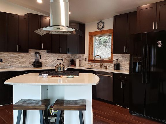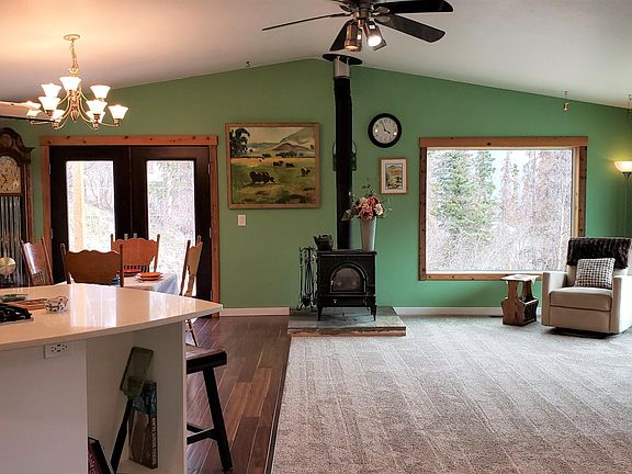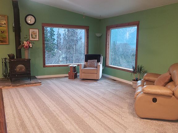 Beautifully remodeled ranch home w/custom touches w/an amazing view. Owners built an oversize garage (36x28) w/in floor heat, replaced all windows & doors, flooring, deck, remodeled kitchen & bathroom, replaced septic tank 2017 (5 bed septic), installed a french drain, high-efficiency boiler, side arm, forced air furnace, wood stove & H20 softener. Seller is a licensed to do real estate in Alaska.