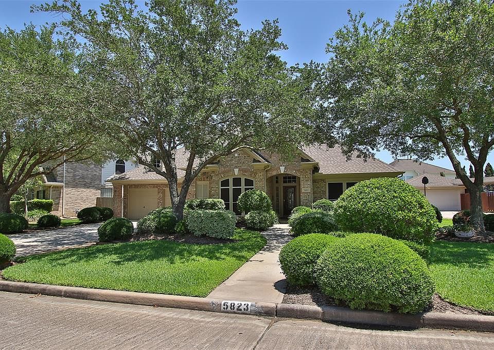 ONE STORY BEAUTY with 4 bedrooms plus study w/double French doors and 3 full baths. Open floor plan with tall ceilings. Island kitchen w/granite counters, stainless steel appliances, gas cooktop, refrigerator, washer and dryer included. Breakfast room overlooks beautifully landscaped yard and serving snack/bar opens to spacious den with fireplace, 58 inch 3D TV and sound system. 4th bedroom could be hobby or bonus room. Formal dining w/laminate wood floor. Master bedroom w/luxury bath. Recent A/C, roof, water heater, exterior paint, attic flooring, storage cabinets in garage. All brick exterior. Sprinklers. Original owner.