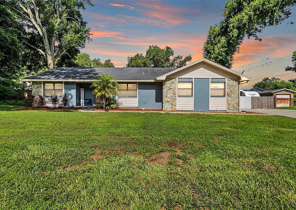 Looking for a South Lakeland home on a large lot with no HOA? Schedule your showing today! This well maintained 3/2/2 is now available. Sitting on a .36 fully fenced lot with an extended driveway this home offers relaxed living with plenty of room to enjoy the outdoors and store your toys. Set up as a ranch with the primary bedroom separated from the others from the entry you immediately are greeted with the spacious living room with vaulted ceilings, wood burning fireplace and wood beams. A flex space could be a formal dining room, office area, play area, cocktail lounge area, the options are endless. The recently renovated kitchen shows off wood cabinets, granite countertops and stainless steel appliances with an eat in area. From there, exit thru the french doors out to your enclosed, screened in generous patio area. The owners added another paved patio for an additional grilling or sitting area next to the fire-pit. There is still plenty of room to add a pool or even a large garden along with space to park a RV. The large shed with electricity will convey. This home has been well maintained with the exterior and interior having been recently repainted, an architectural shingle roof replaced in 2018, new HVAC in 2022, and wood-look tiles added onto the patio in 2023. Situated in a prime location this home offers easy access to major highways, schools, shopping, medical facilities, and dining options. You're minutes from the Polk Parkway and an easy commute to Tampa, Brandon and even St. Petersburg. The home is zoned for George Jenkins High School.