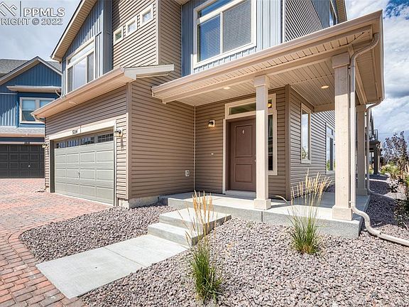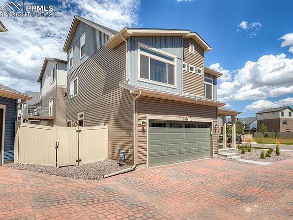 Beautiful 3-Level home in Banning Lewis Ranch, built in 2021 this home is still new, lived in for 1 year. This carriage house series home in Banning Lewis features a corner lot, new appliances, vinyl wood floors, granite countertops and island, private backyard, a 5-piece master bathroom, covered front porch, tile showers, ceiling fans, central air, and a spacious top level loft/family room. Home is located in Banning Lewis Ranch community which offers amenities to members such as club house access, private pools, community parks and events, and plenty of parks and trails. This home is a must see!!!!