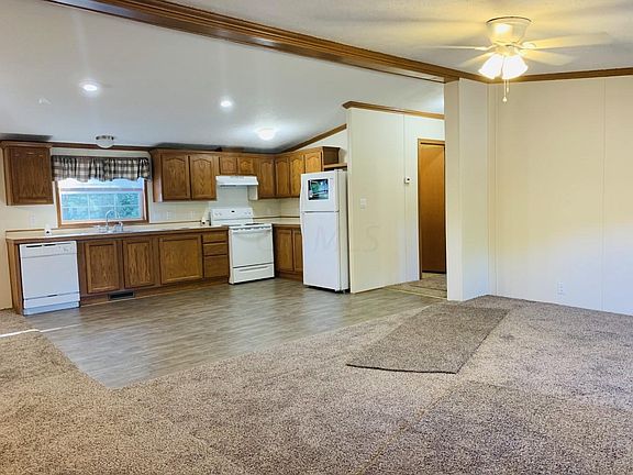 Located just minutes from Buckeye Lake, this home features an open floor plan with a spacious living room, a large kitchen with new appliances and an eating area that opens to the deck and back yard. The bedrooms are split, with the owner's suite (including bath with large garden tub and shower) at one end, and the secondary bedrooms and additional full bath at the other. All bedrooms have large closets. This home has been newly painted throughout, and features new carpet and vinyl plank flooring!