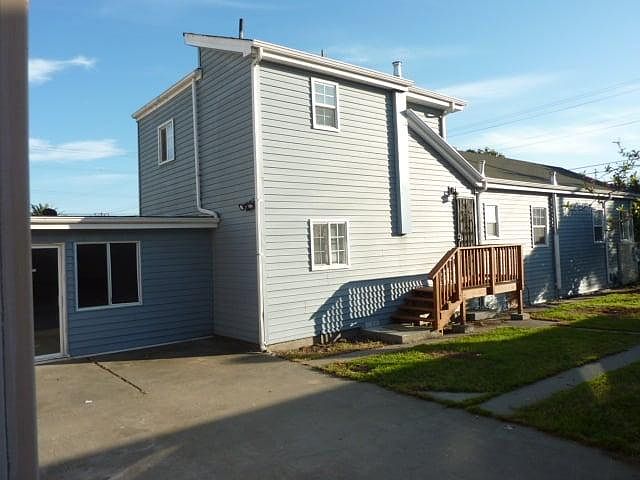Bright sunny home: 5 Bedroom/2 Bathroom, 1590 SF living area with 2 extra large spacious storage rooms in the big backyard (land:5400 SF). . Security gate, fenced front, side and back yard, quite neighborhood; Big side yard for 4-car parking space and big playing area with 5 fruit trees with big gardening area for planting flowers and vegetables; Large Living Room with fireplace; Remodeled bathroom with new bathtub and toilet, new window, new wall and new floor. Remodeled master bedroom with hardwood floor; Dual pane windows, hardwood and tile floor; Spacious kitchen remodeled with granite countertop, refrigerator, new dishwasher, microwave; Inside laundry room, washer and dryer provided. Fresh interior and new painting; Available to move-in. Section 8 is accepted. Open House based on appointment. $4300/month rental. Owner pays for trash. $4300 plus cleaning fee as security deposit. The application fee is $45/per applicant, non- refundable, for credit check and background check. No pets. Area: Convenient location, close to the 580& 880 freeway, BART Station and bus stop. Owner pays trash. Renter pays water, gas and electricity. Last month rent with cleaning fee as security deposit due at signing.