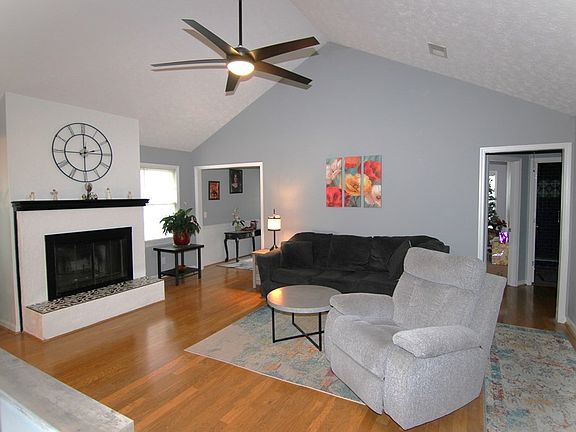 Move-in ready home featuring entry foyer, recently updated kitchen with Quartz countertops, new breakfast bar with room for stools, stainless steel appliances and tiled floor, great room with wood burning fireplace and cathedral ceiling, double French doors from dining area to screened porch overlooking neighborhood lake and double carport, large master bedroom with tray ceiling and walk-in closet, master bath with double vanities, garden tub and separate shower and tiled floor, carpet in bedrooms only, hardwood floors in foyer, great room, hallway and dining room.