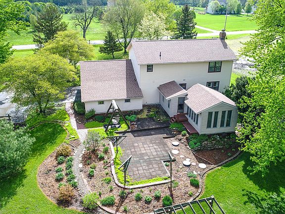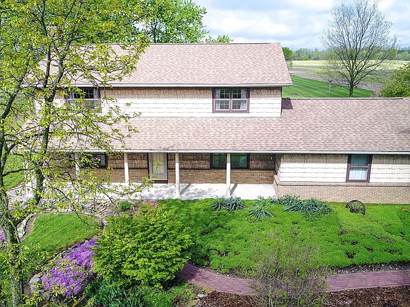 This beautiful unique two story home offers serenity galore. Front porch for cool summer nights, three season room with fabulous view of approximately 2.5 acres....and many options available if you just want to stay indoors. You will be amazed at the character this home offers, with slate entrance way flooring that leads to large open living area with hardwood floors and wood burning fireplace. Great long and narrow island in kitchen that serves as a table or buffer area. If you want a bedroom on the main level, you may have one....if not, it serves as a wonderful den.This room was a more recent addition. Other updates a new roof, and two new garage doors which are approximately two years old, and a well pump replaced a year ago. Home is currently all electric $150 mo budget.