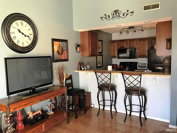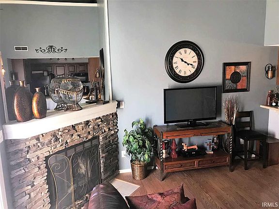 Polo Run is a townhouse style condo community on Evansville's far Eastside with easy access to Newburgh, Henderson, and the growing I-69 corridor. Polo Run is a PUD (planned unit development) with low monthly association fees of only $50. This end unit offers a private, small fenced backyard with deck, adjoining large grassy common area, and a perfect area for small dogs. Main level features a bedroom suite with full bath that could be a great home office or guest bedroom. The updated galley style kitchen includes all appliances in the sale, breakfast bar opening into the vaulted ceiling great room, and adjacent dining nook. Main floor laundry closet accommodates full size washer & dryer. Wood laminate flooring in the great room and patio door to deck and backyard with outdoor storage closet for out of season items. Custom stacked stone wood burning fireplace and large mirror create the perfect cozy loft feeling. Upstairs second bedroom suite is loft style and features the second large full bath and walk-in attic storage. Polo Run is not a traditional condo, and is FHA mortgage eligible. Associations fee cover trash pickup & recycling, maintenance of common area grounds, parking lot, perimeter fencing, and landscaping improvements coming soon. Very low property taxes and affordable utility costs.