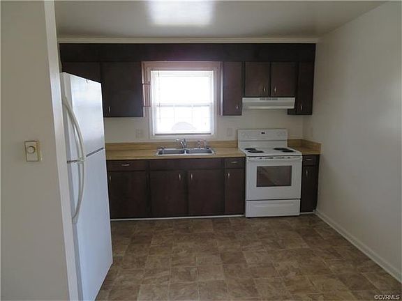 Adorable rancher with front porch located on a large fenced in Lot with a nice size deck for entertaining and view of the golf course. This home is move-in ready with fresh paint & new carpet throughout, eat-in kitchen, utility room, plenty of closet space, and a detached storage shed. Great starter home or rental property investment. The floor plan flows well with lots of natural light flooding the home throughout. Conveniently located to 288, Route 10, Powhite Parkway, restaurants, shopping, and more.