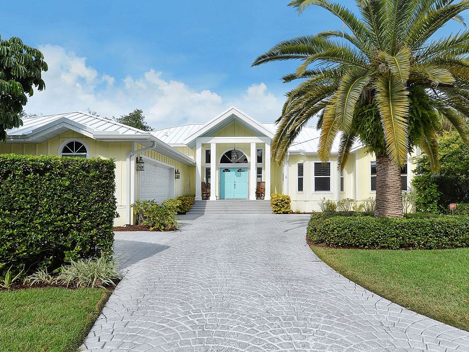 Boating, beach and a tropical oasis awaits you at Riegel’s Landing on Siesta Key. This gated enclave of custom homes enjoy a private boat basin with deep-water and docks to accommodate 50’ + yachts having direct access to Sarasota Bay and just 2 blocks from the #1 Beach… Siesta Key. This sprawling single story home with many updates has a foyer entry with flowing open floorplan; all generous sized rooms and views to the fabulous outdoors where you can spread out and entertain among the lush landscape including fruit trees and flowering plants. Major improvements 2008-2017 including adding a large sitting room with wet bar, metal roof, A/C & ducts, flooring, extra insulation, interior and exterior paint, bath remodels, pool resurface, paver lanai, complete outdoor kitchen, waterproof exterior under-stair storage, garage door, rain barrels etc. Kitchen with large corian top island, separate cook top and oven is perfect for the family cook or baker. Each bedroom has direct access to a bath. High ceilings, split bedroom plan, crown molding, plentiful closet space, lovely front courtyard and circular drive are added features. Your deeded dock with water & electric is just steps away. Premium location on Siesta Key.