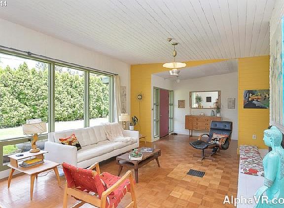 Exceptional example of Mid-Century modern architecture in this 1955 home. Open and bright floor plan. Wall of windows brings the outside in. L shaped home wraps an inviting patio and expansive lawn. Radiant floor heat will keep your tootsies warm all winter. Modern updates while keeping original details.