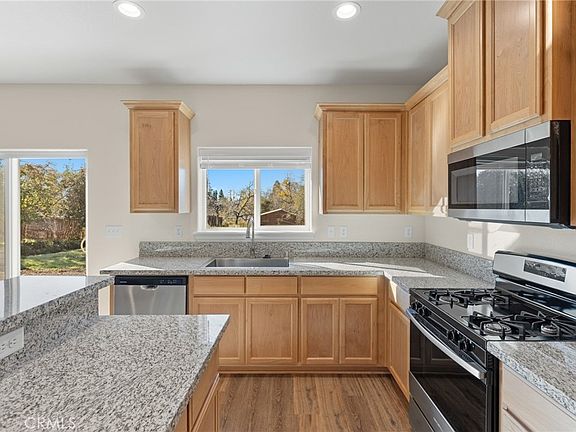 Looking for a quality newly built home in Paradise? You must check out this home. Built by local contractor, Anderson Builders Corporation, this wonderful home features 3 bedrooms, 2 bathrooms, and a den at for an at home office or additional space for the family room. The kitchen boasts stainless steel appliances, slab granite countertops with a large island, a gas range, stainless steel farmhouse sink, and a microwave above the range. You have the primary bedroom on one side of the home with its own slider to the backyard, and the other two bedrooms on the other side of the house with distance from the family room to make sure there is peace and quietness when needed. The floors are luxury vinyl plank flooring throughout with mini-blind window coverings, upgraded closet packages, insulated interior walls between the bedrooms and bathrooms, mini-split heating and air conditioning systems, and a 2-car finished garage with laundry hookups. The backyard is fully fenced with RV access and RV hookups on the garage side of the home. The home includes fire sprinklers, owned solar and an energy efficient water heater to keep your utility costs down. The seller is only considering owner-occupied buyers. These quality homes sell quickly. Call your Realtor today for a viewing.