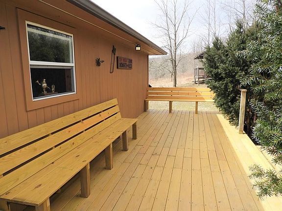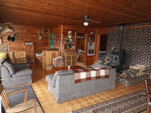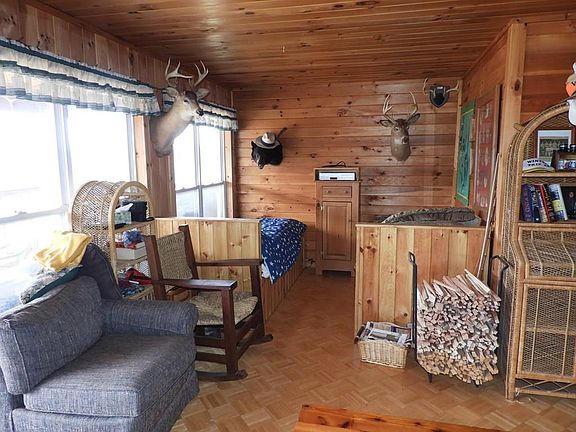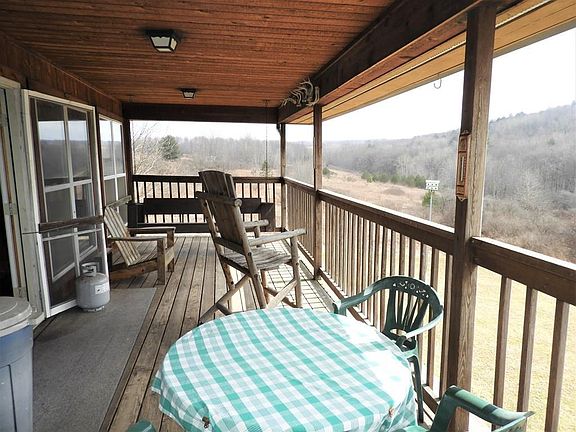 Country Paradise! Get away camp or Hunters dream cabin! Secluded rustic cabin. Two bedrooms,living room with great wood stove!, kitchen and dining area. Relax on the huge porch spring on the covered deck and watch the wildlife or fish in the stocked pond! No plumbing installed only half bath with water to flush toilet only.(septic is holding tank). Sinks are installed for future use only. There is a gas range to cook on. Electric provided by generator which has its own shed and electric ran under ground. A total of 87.13 acres 3 parcels! Land is a combination of woods (60) acres,open fields, and brush.