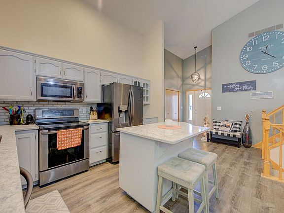Check out this spacious home and book your showing today! The kitchen has been updated with quartz counters & center island, stainless steel appliances, and tiled backsplash. Living room has a new stone accent wall and vaulted ceilings. Primary bedroom has a bathroom attached and plenty of space. Family room has a nice gas fireplace surrounded by stone. Two more bedrooms in the lower level to go along with a bathroom. Basement is oversized with plenty of storage/recreation space. Backyard is nearly 1/3 of an acre, fully fenced with a large deck and an above ground pool.