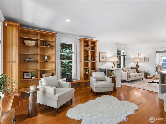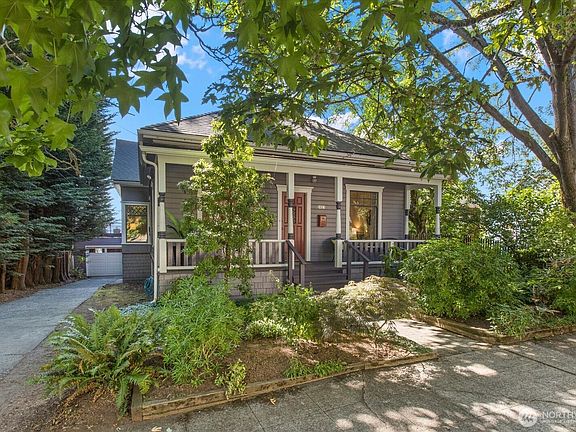 Welcome home to this Seattle Classic! Covered front porch welcomes you into this Craftsman with its vintage charm still intact. Beautiful wood floors and bookshelves ready for your library. Main floor living area has study/sitting room, cozy living room, AND formal dining room for all the space you need. French doors lead to private office space overlooking the backyard. Detached garage with rooftop deck is perfect for summer sunsets over the Olympics. Unfinished basement allows for room to grow with great ceiling height, natural light, and separate entry. Gardens teeming with hummingbirds and butterflies provide year round interest and color. In the heart of Phinney/Ballard - close to South Lake Union, UW & Downtown Seattle.
