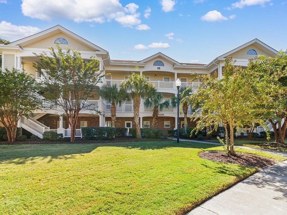 Welcome home to this 2nd floor, 2 bedroom, 2 bathroom end unit in the highly sought after, ICW community of River Crossing at Barefoot Resort! This unit is located in a golf course community and features an open floor plan with beautiful natural light and LVP flooring throughout the main living areas. The kitchen is equipped with all white appliances and cabinets with a backsplash to match, upgraded countertops and ample cabinet space. Each bedroom includes a spacious closet, ceiling fans and easy access to its own bathroom, while the master also includes a large walk in closet. This condo unit offers an Ecobee smart thermostat and simply safe alarm system. Spend your afternoons relaxing on your balcony with a golf course view or socializing with friendly neighbors at the many Barefoot amenities. River Crossing is perfectly situated close to all of the Grand Strand's finest dining, shopping, and entertainment attractions. Whether you are looking for your forever home, a second home near the beach, or your next investment opportunity, you won't want to miss this; Schedule your showing today!
