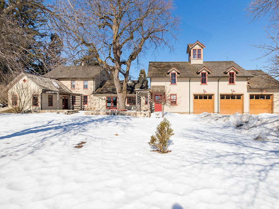 A magical mix of old-time charm and modern conveniences can be found in this quintessential Cedarburg Stone Farmhouse! Sun-drenched living room with original hardwood floors and a natural fireplace. 2015 kitchen remodel designed to blend with the original details features custom cabinetry and butcher block counters. Sumptuous master suite with vaulted ceilings makes use of the stone walls & rustic beams that were part of the original farmstead. Master bathroom has dual vanities and large whirlpool tub. Lofted Family room with cupola is the perfect place for Movie Night! Cozy main floor office and utility room. Stone courtyard surrounded by beautiful perennials. Historic barn and outbuildings for your 'big toys'! Fruit trees frame the 4.71 acre pastural grounds of this one of a kind home!