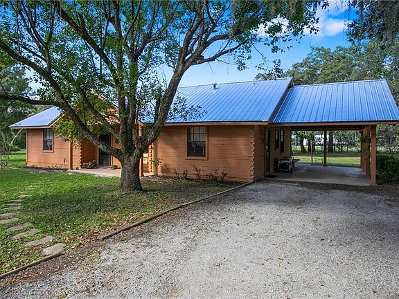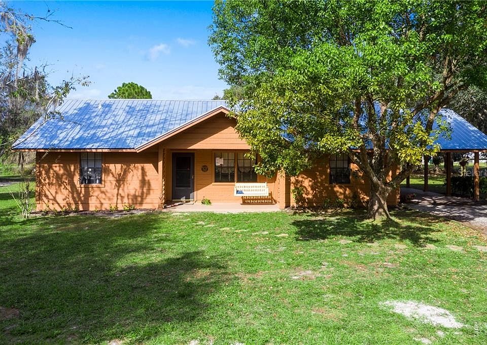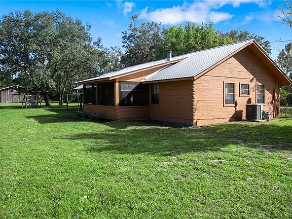"Wow" is what you'll think as you pull up to your charming LOG HOME! The covered front porch is as welcoming as it gets, and is perfect for sitting and enjoying the warm Florida atmosphere. The spacious and open floor plan is great for entertaining, with ample space for everyone to relax. Vaulted ceilings and wood floors are just two features you'll love, as you head from the spacious living room into the roomy kitchen with eat-in space and closet pantry. The master suite boasts a walk-in closet and private bathroom featuring a walk in shower. The additional 2 bedrooms are just across the house, as well as the 2nd bathroom with CLAW FOOT TUB. The fully enclosed rear patio is a great place to spend the evenings without the worries of mosquitoes, moths and other pesky critters. But wait. Did we mention that this home sits on over 2 acres of fenced-in land with multiple gates for access, and features a HUGE barn/workshop space that can be used for pretty much anything you'd need? It even features 2 stalls to for the equestrian loves of your life! What more could you ask for? Come see this one today and get ready to fall in love. Home is complete with a NEW METAL ROOF, A/C 2019, NEW well Motor and Termite Bond! Located within MINUTES of Lake Nona and the 417.
