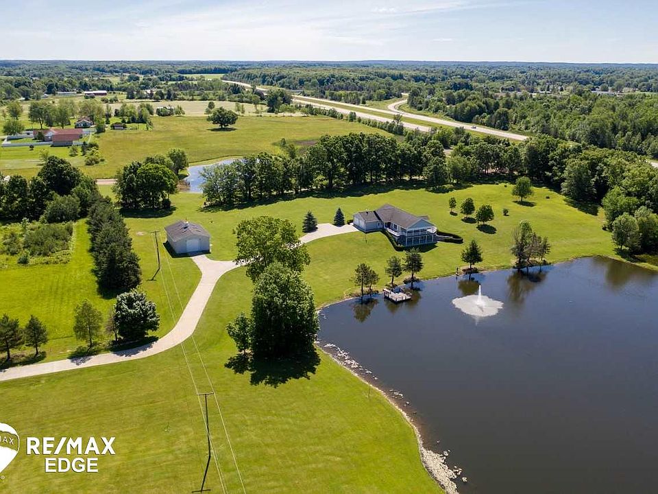 Serene setting for this walk-out ranch on 14.61 acres. Relax on the wrap around porch or patio & enjoy the amazing views of the pond & fountain. Welcoming foyer welcomes you into this well loved home. Stone fireplace and vaulted celling accent the great room. Expansive kitchen and dining area for entertaining. Beautiful ash cabinets & Corian counter tops. Stainless steel appliances. Master Bedroom features a jet tub, shower & walk-in closet. Lower level walk-out it ready to finish and has a second fireplace. Convenient central vacuum. Quality built with 2x6 construction, engineered I joints and floating joists, Anderson windows, composite decking & vinyl porch, natural gas line to the deck for a grill, 26x24 concrete bunker under the garage. 28x26 insulated garage with hot & cold water and natural gas line to add a furnace. 48x32 Pole building with concrete floor & electric. Full house Generac Generator stays.