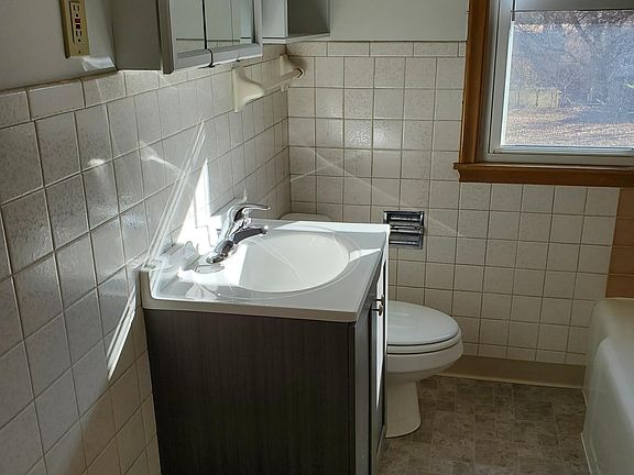 Carpet in Living Room, Vinyl flooring in Bathroom, Kitchen and Entry. Bathroom Fixtures including Vanity, Sink, Faucet, and Medicine Cabinet /Mirror, KITCHEN including Cabinets, Counter and Flooring, all new one year ago. Large Finished Basement Rec Room, Storage Room , Laundry Hook Ups. Detached Garage with Opener, HUGE fenced back yard. Excellent Neighborhood, Near Gateway Mall, quiet street, NO SMOKING available April 1,